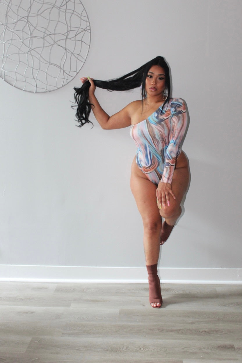Stretchy one sleeve bodysuit.